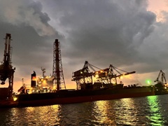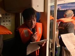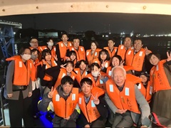 また夜には、本校生徒8名が水島コンビナートのナイトクルーズでガイドを務め、工場夜景を海上から楽しむ参加者に向けて、コンビナートの成り立ちや産業構造、環境への配慮などについて紹介しました。