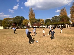 水島商店街のまちあるきでは、高度経済成長期に栄えた地域の姿に触れながら水島中央公園へ移動し、昼食後は子どもたちと高校生が一緒にサッカーやフリスビーなどを楽しみました。午後は、本校生徒のガイドによる水島コンビナート周遊バスツアーを行い、地域産業の歴史や環境への取り組みなどにも触れました。