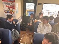 最後に、クルーズで海からコンビナートを見学し、迫力ある景観や水島港の国際性について学びました。また、JICA中国からの留学生(岡山大学・香川大学)も同行し、本校生徒が英語でガイドを行うなど、国際交流の機会も得られました。