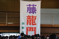 校長先生からは、「藤龍門」についての紹介と激励の言葉をいただきました。続いて進路課長の先生からの激励の言葉ののち、年次主任の先生と3年次団の先生方からのメッセージ動画が流されました。