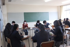 卒業生は進学先の各分野ごとに分かれ、在校生はそれぞれ希望の分野を選んで参加し、受験を終えたばかりの先輩方のお話に耳を傾けるとともに、熱心に質問する姿もみられました。