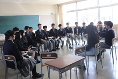 3月17日(火) 先日卒業式を終えたばかりの44期生の先輩を迎え、2年次生が卒業生を囲む会を行い、39名の卒業生が講師として参加してくれました。