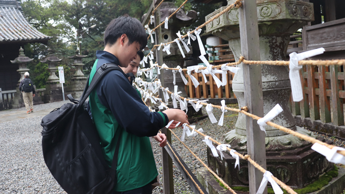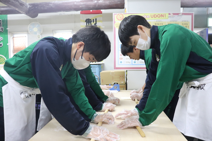 あいにくの雨でしたが、車中や長い参道をうどん打ちの体験では互いに応援しながら、親睦が深まりました。楽しい思い出の1ページを胸に、47期生の古城池生としての生活がスタートしています!