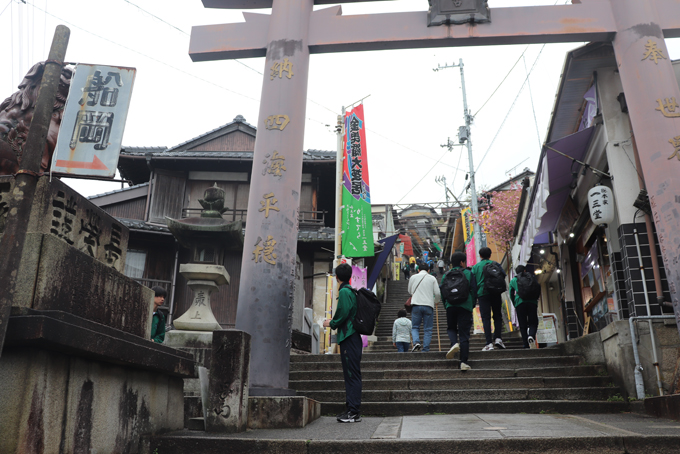 4/15(木)1年次生は香川方面への1日研修を実施しました。香川はあいにくの雨でしたが、2班にわかれ、中野うどん学校にてうどん打ち体験と、本宮までの石段を登りながらの散策を行いました。