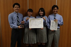 7月に受賞した、山陽学園大学主催の「ちいきまねじめんとこんてすと」金賞とともに、校長室で授賞式が行われました。