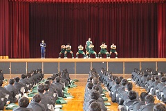 4月9日 2、3年生による部活動紹介が行われました。様々な部が工夫を凝らし、新入生を獲得しようと一生懸命部の魅力を紹介していました。